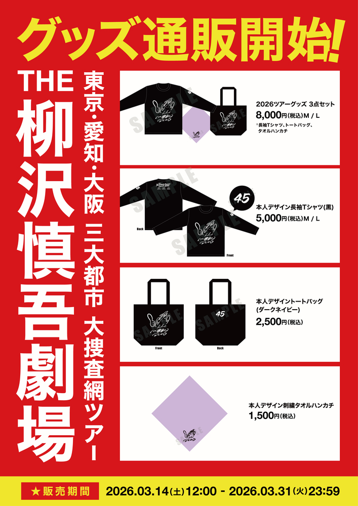 『THE 柳沢慎吾劇場』東京・愛知・大阪 三大都市大捜査網ツアーのオフィシャルグッズ期間限定ネット販売開始!!